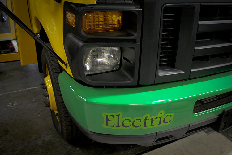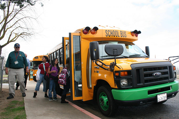 The first 100% electric school bus is now running in the Kings Canyon District, California. The vehicle uses a Motiv Power System electric propulsion engine installed on a Ford E450 chassis, with an 80-100 miles range and a capacity of 25 students (or 18 students + a wheel chair).