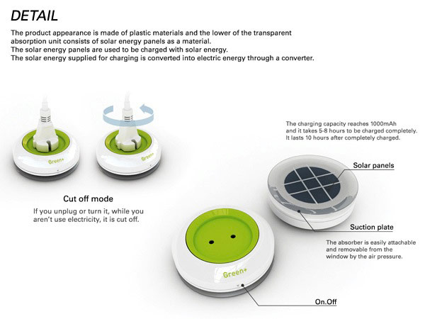 Has your phone or tablet ever run out of battery while you were in a car, train, airplane,… or maybe in a cafe, or simply outdoors? No need to panic any more! Industrial designers Kyuho Song and Boa Oh have created The Window Socket, a solar plug socket that allows you to recharge your device directly from the greatest energy source: The Sun. It’s suction cup allows you to stick it on a window, displaying photovoltaic panels on the outside. The Solar Socket stores collected energy so that it can be used later at night or in the darkness.